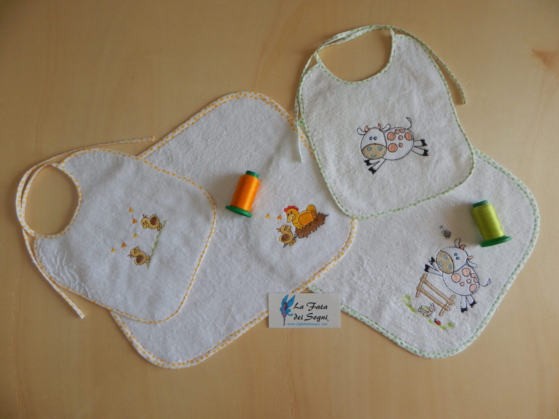 Set Asilo Tovaglietta e Bavetta in Spugna, Ricamo Punto Pieno, Rifinita in Sbieco Cotone 100%